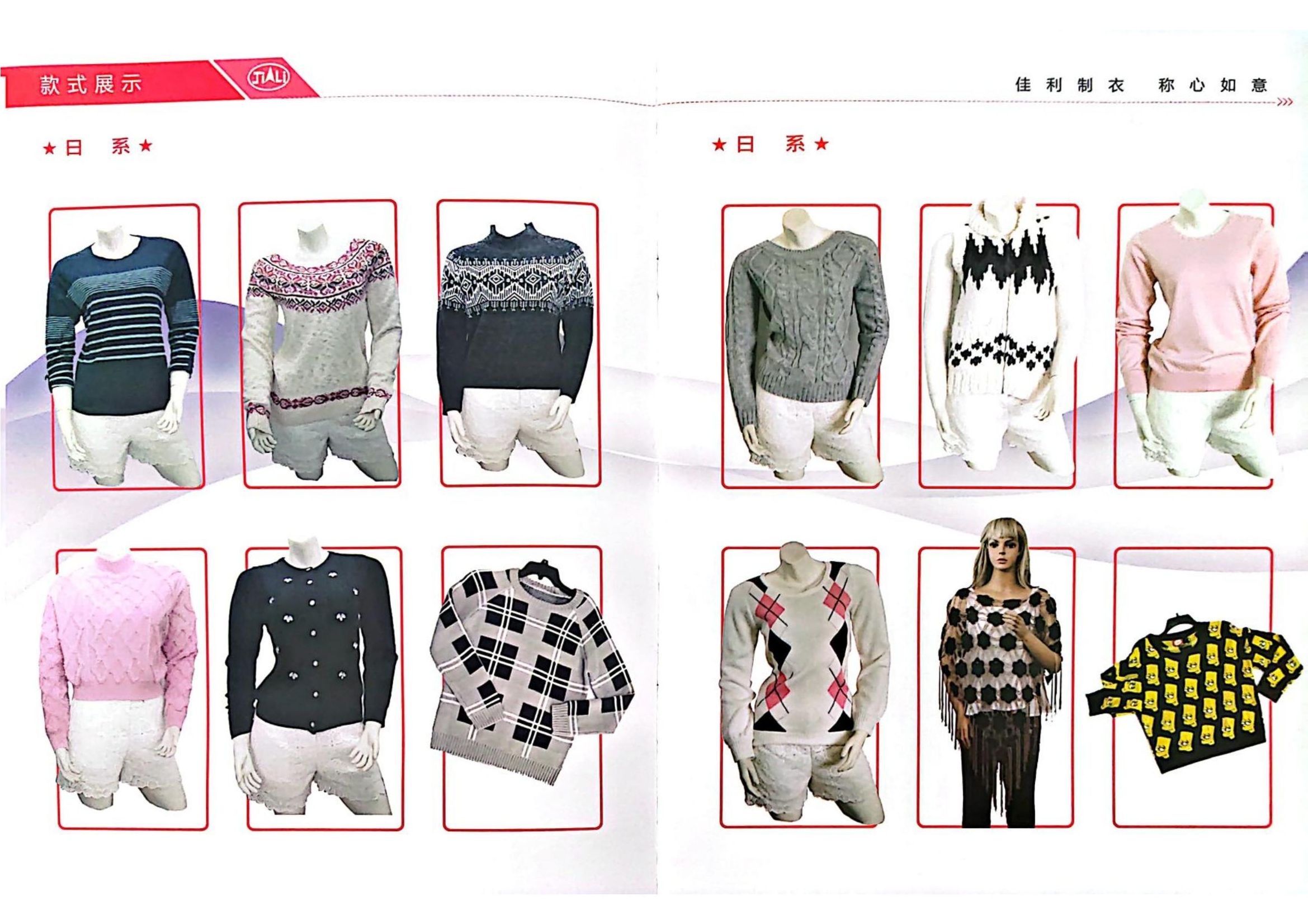 山東省乳山市佳利制股份有限公司于2001年2月成立,位于乳山市城區(qū)工業(yè)園營(yíng)口路。現(xiàn)有從業(yè)人員260人,其中男性100人,女性160人。固定資產(chǎn)5000萬(wàn)元,占地22000㎡,建筑面積13800㎡。主要生產(chǎn)各種針型的毛衫及手鉤、刺繡等工藝服裝,針織、梭織面料服裝,主要銷(xiāo)往日本、美國(guó)、意大利、英國(guó)等幾十個(gè)國(guó)家和地區(qū)。